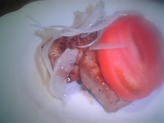 できたらお皿に盛り付けてとまと、玉ねぎスライスをのせてできあがり!